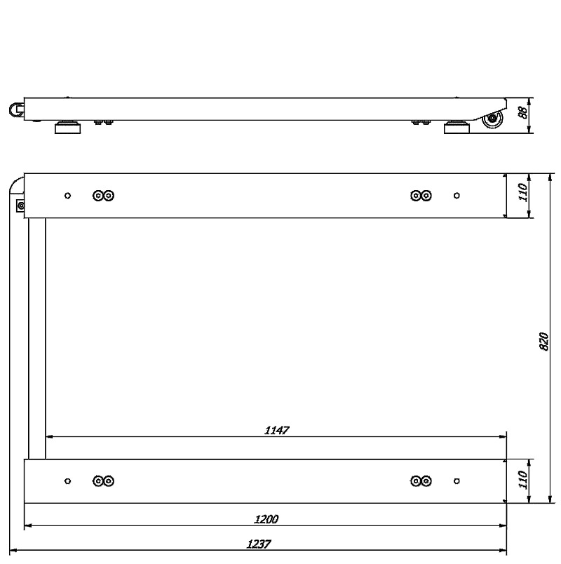 Solide, wartungsfreie, Stahlkonstruktion aus verwindungsarmer Profilkonstruktion. Breite Schenkel für einfache und sichere Auflage. Bauhöhe ca. 85mm. Widerstandsfähige schwarze Pulverbeschichtung. Integrierter Handgriff und im Rahmen eingebaute Rollen für den komfortablen Standortwechsel.